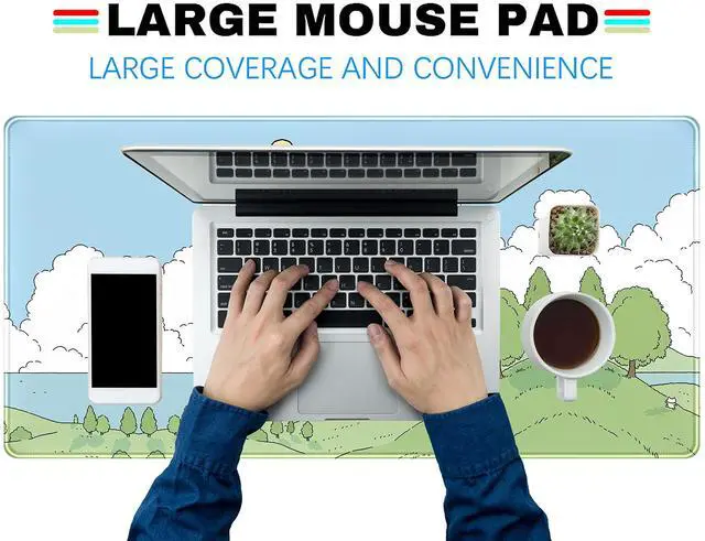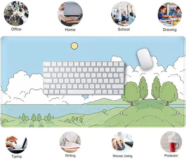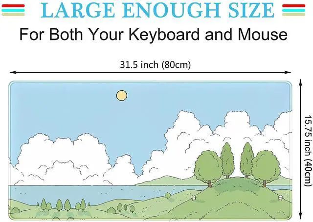 KEHIPI Cute Anime Desk Mat Kawaii Mousepad, Anime Street Aesthetics Desk Pad XXL, Japanese/Korean Lo-fi Drawing, Cute Green Blue Nature Mouse Pad Computer Keyboard Mat, Office Desk Pad Protector