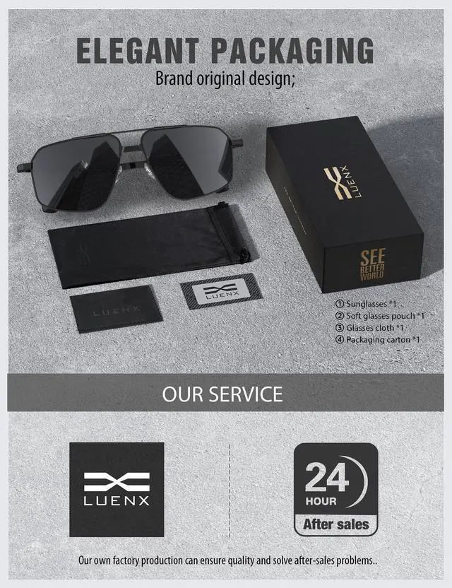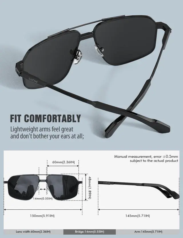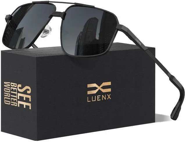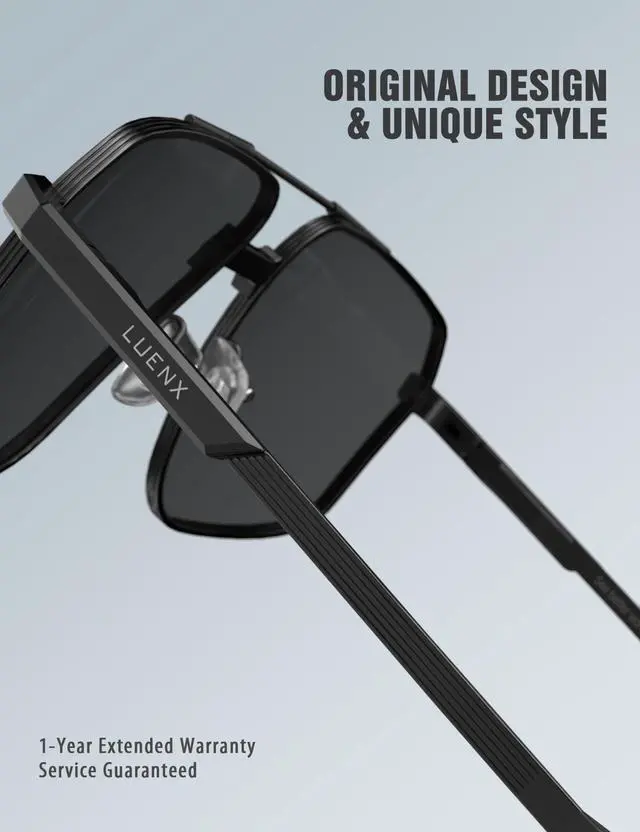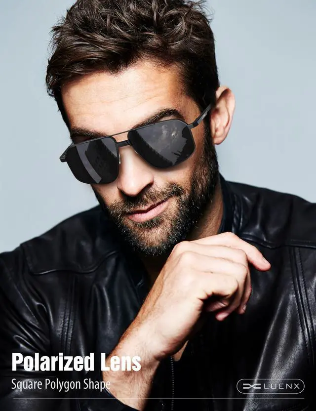 LUENX Mens Women Polarized Square Polygon Sunglasses Driving Retro 60MM