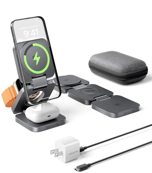 - What You Get: 1 * Fast Charging Wireless Charger(Foldable 3-in-1), 1 * 30W GaN USB-C charger, 1 * USB-C to USB-C Cable, 1 * Exquisite protection storage bag, 1 * User Manual. (Note: Compatible with Apple iPhone 17/16/15/14/13/12 series, Apple Watch Ultra 3/Ultra 2/Ultra/Series 11/10/9/8/7/SE3/SE2/SE/6/5/4/3/2/1, AirPods Pro 3/2/Pro; AirPods 4/3/2/1)