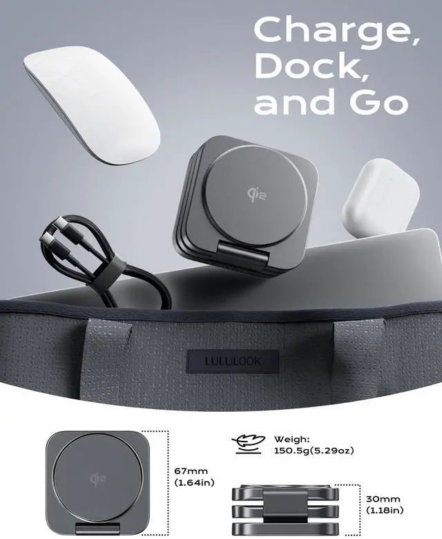 | Included Components | 3 in 1 Wireless Charger (Foldable & Qi2 &Magsafe Compatible), 30W GaN Power Adapter, Travel storage bag, USB-C to USB-C Cable |