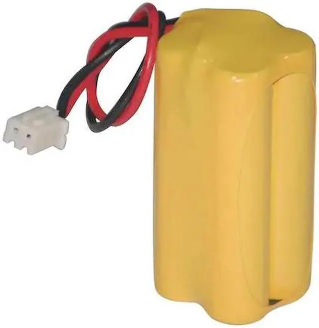 Battery, Battery Chemistry Nickel Cadmium, Battery Capacity 300 mAh, Compatible with Series 6CGL3A,53RH94,53RH95,53RH96,53RH97, Recharge Time 24 hr, Voltage 4.8 V, JST Terminal Type, Plug AMP Terminal Connection, Rated Life 4 yr, Yellow Housing Color, Compatible Grainger Part Number 6CGL3; 6CGL4, Compatible Mfr. Model Number 6CGL3, 6CGL4, Maximum Operating Temperature 113 Degrees F, Minimum Operating Temperature 32 Degrees F, 3 1/2 in Lead Length, Overall Depth 3/4 in, Overall Height 1 3/4 in