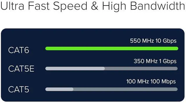 | Compatibility | Cat5e cables are backward compatible with older Ethernet standards (Cat5, Cat3), making them versatile for various networking devices. Ideal for low-cost upgrades without sacrificing speed. |