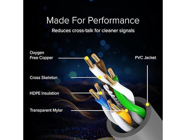 Premium Copper Wiring: Made with 100% pure bare copper conductors, this cable delivers superior conductivity and reduces signal interference, guaranteeing smooth gigabit-speed connectivity for WiFi networks, printers, switches, and other devices.