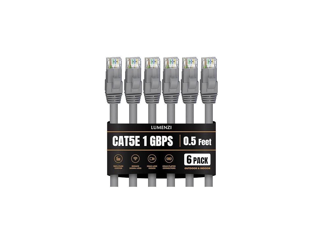 Lumenzi Cat 5e Ethernet Cable 0.5 FT in Grey 6 Pack UTP 1 Gbps Speed Network Short Round Direct Burial Bare Copper LAN Patch Cable for Router Gaming PS5 XBOX Printer Computer CCTV Camera