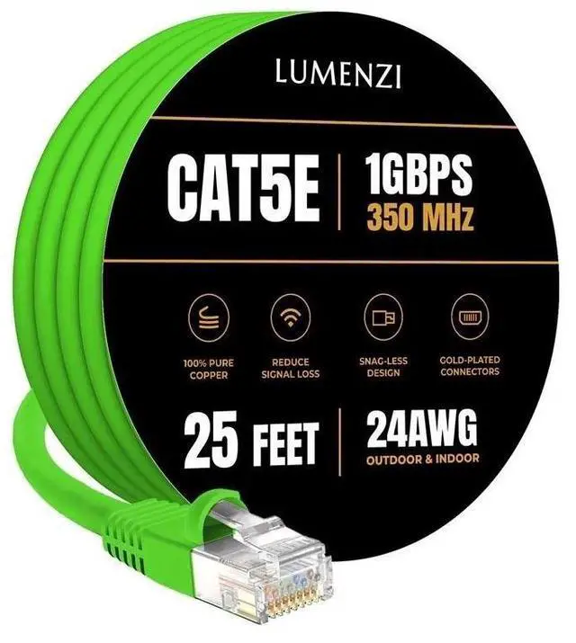 Keep your network running smoothly with this versatile Cat5e Ethernet cable. Perfect for connecting gaming consoles, computers, printers, and CCTV systems, it delivers fast and reliable gigabit speeds up to 1 Gbps. Crafted with 100% bare copper conductors, it minimizes signal loss for consistent performance. Engineered for outdoor use, this 25-foot cable is UV resistant, weatherproof, and suitable for direct burial, making it ideal for both harsh environments and long-distance installations. Flexible and durable, it easily connects routers, switches, and other network devices, providing dependable performance for home or business networks.