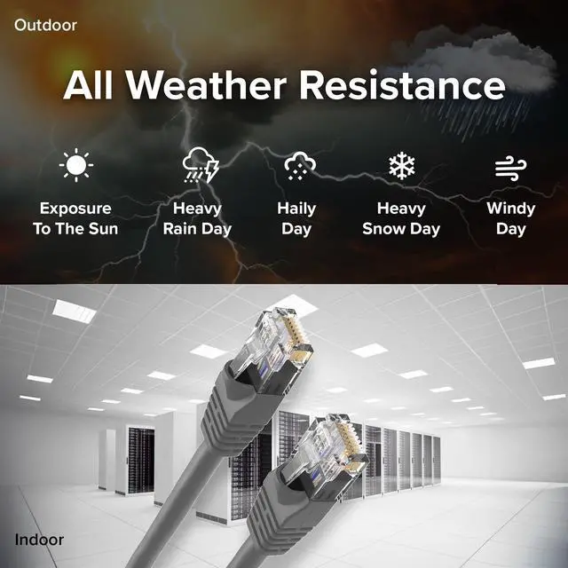 Weatherproof Ethernet cables ensure fast, stable connections indoors and outdoors. Built for durability, they provide reliable network performance.
