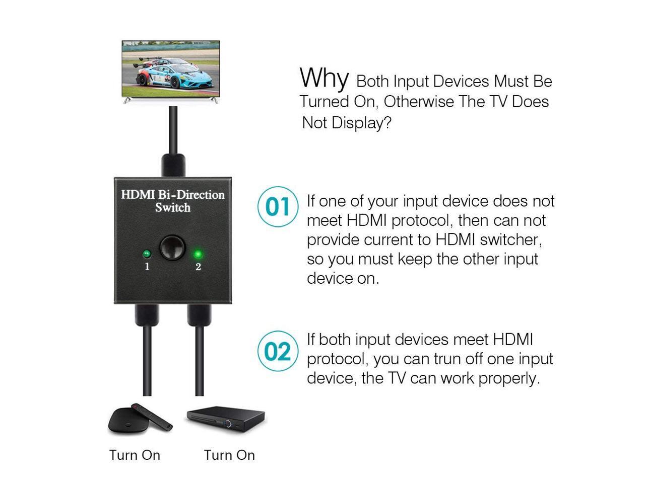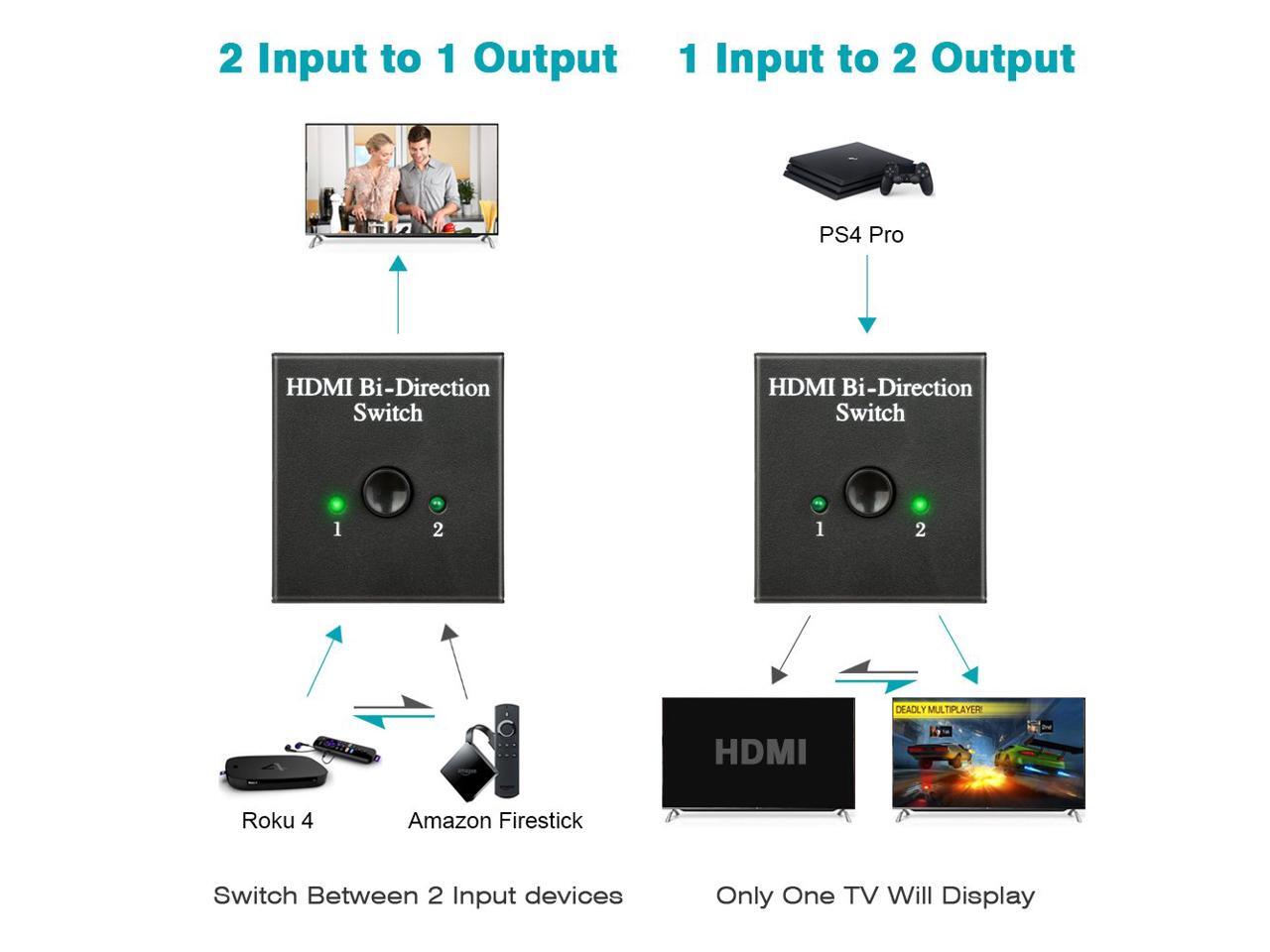hdmi switch 1 Input 2 Output: Connect 1 HDMI source to 2 displays, toggle between 2 display devices. (only one output device will display for each time)