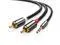 3.5mm(1/8" headphone plug) to 2 RCA(Right/Left) stereo patch cable is ideal for plugging the 3.5mm plug into the headphone jack of your device or computer and the 2 RCA's to the left and right auxiliary inputs on your sound system. This high-end 3.5mm to 2RCA stereo adapter cables offer incredible audio clarity over all lengths to provide a versatile connection between hardware for all your stereo audio needs.