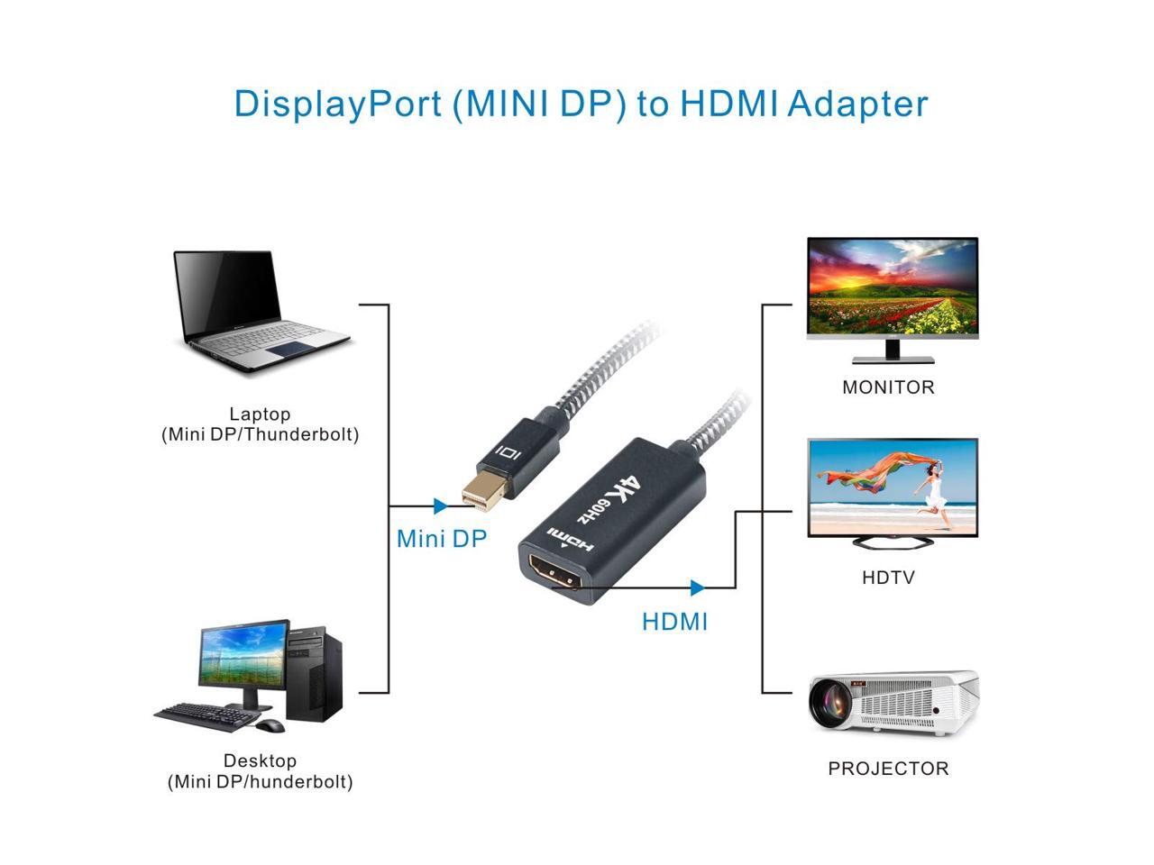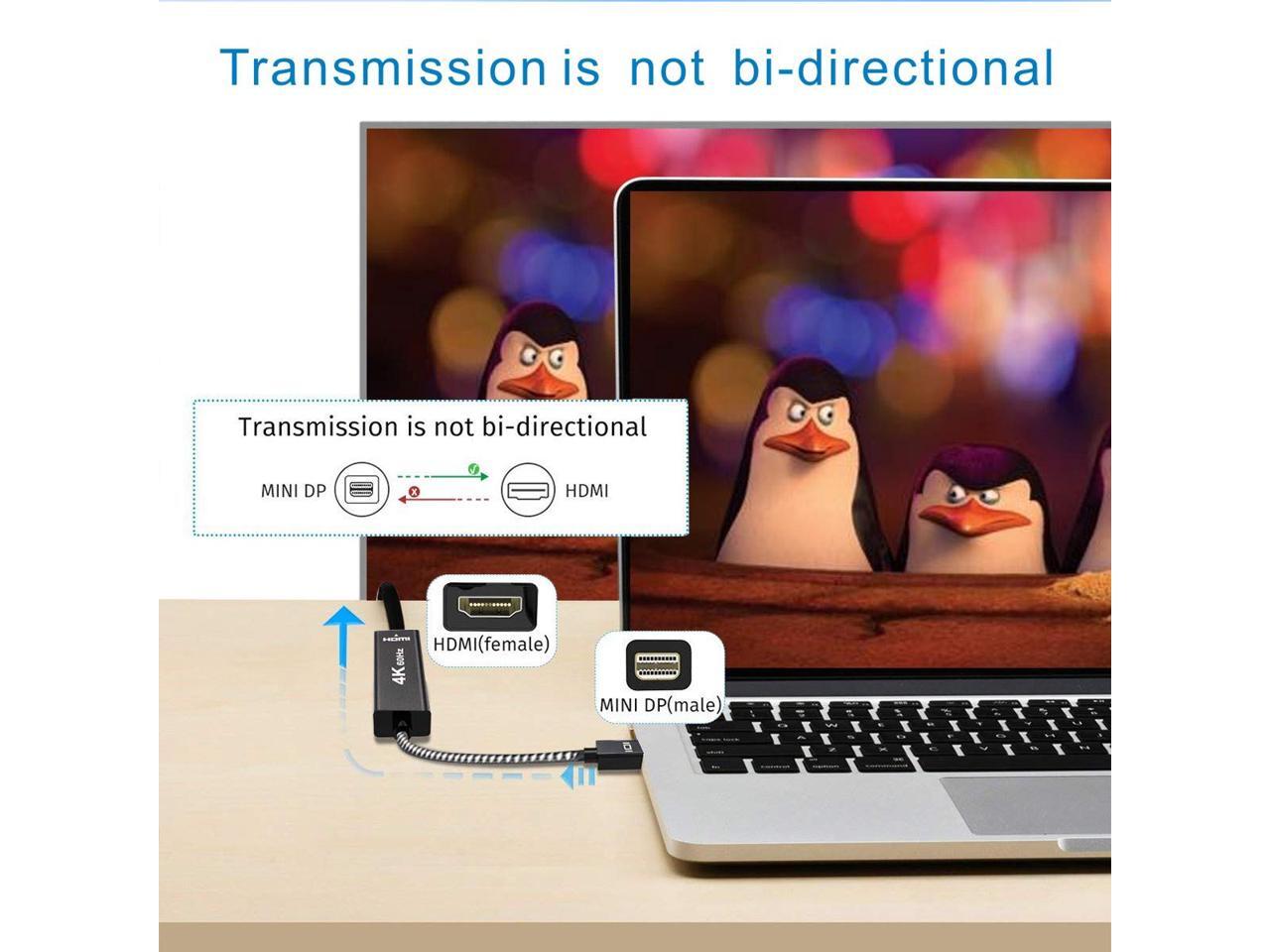 LUOM Active Mini DisplayPort to HDMI Adapter, 4K@60Hz Mini DP(Thunderbolt) to HDMI 2.0 Converter Cable for MacBook Air, iMac, MacBook Pro, Surface Pro 3/4/5,Surface Book(Black)