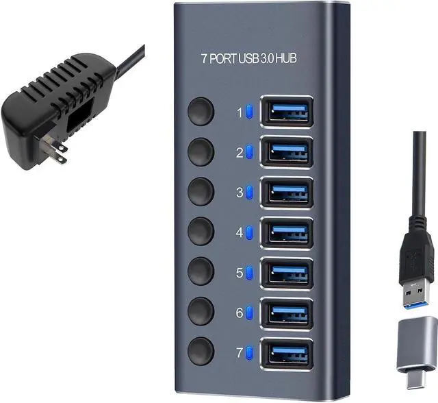 ![Alt view image 2 of 7 - 7-Port USB 3.0 Hub with Power Adapter - USB-A Hub with Individual On/Off Switches - [Durable Aluminum] - High Speed USB 3.0 (5Gbps) - (5Gbps) Hub](https://c1.neweggimages.com/productimage/nb640/ACD5S2312260QJQBHAF.jpg)