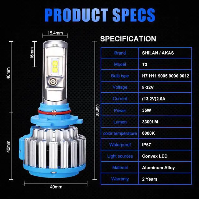 Powerful LEDs provide 7200 lumens(3600LM per bulb)output, producing bright light for increased visual field and distance visibility in darkness and gloom.