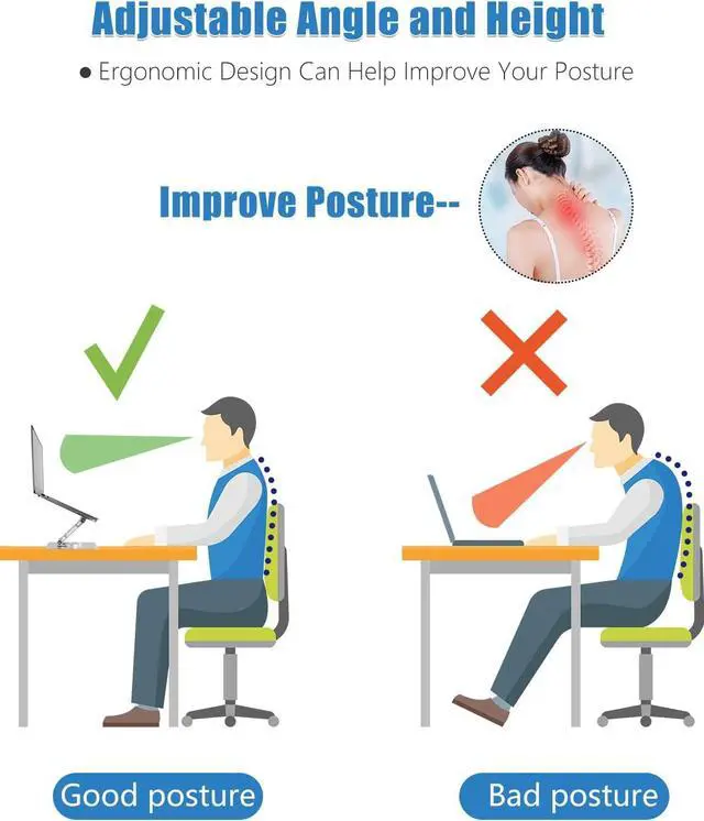 ERGONOMIC DESIGN: The adjustable laptop holder elevates your notebook height for a perfect eye level, which helps to fix your posture and reduce back pain, neck stiffness, wrist aches and eye strain. Very ergonomic and comfortable for reading and typing.