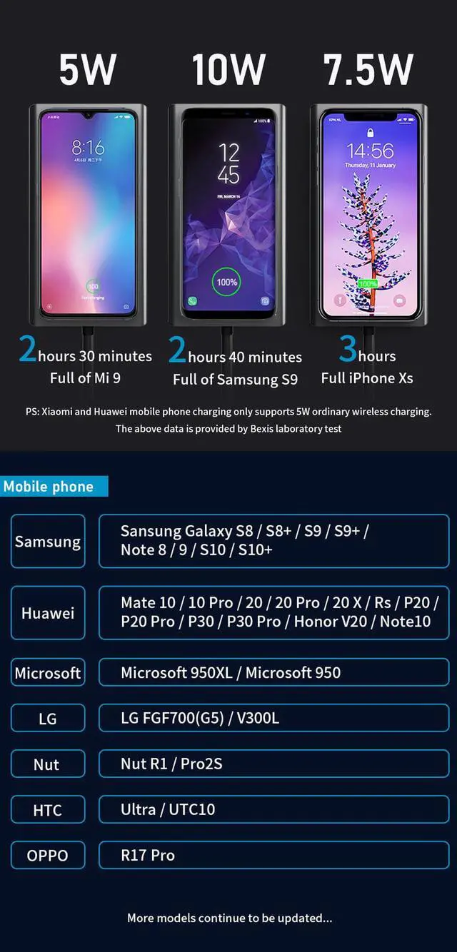 Wireless charging: 10W, 7.5W, 5W