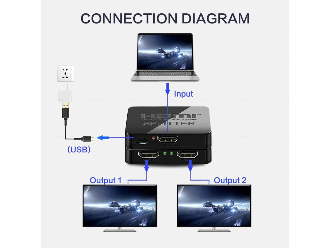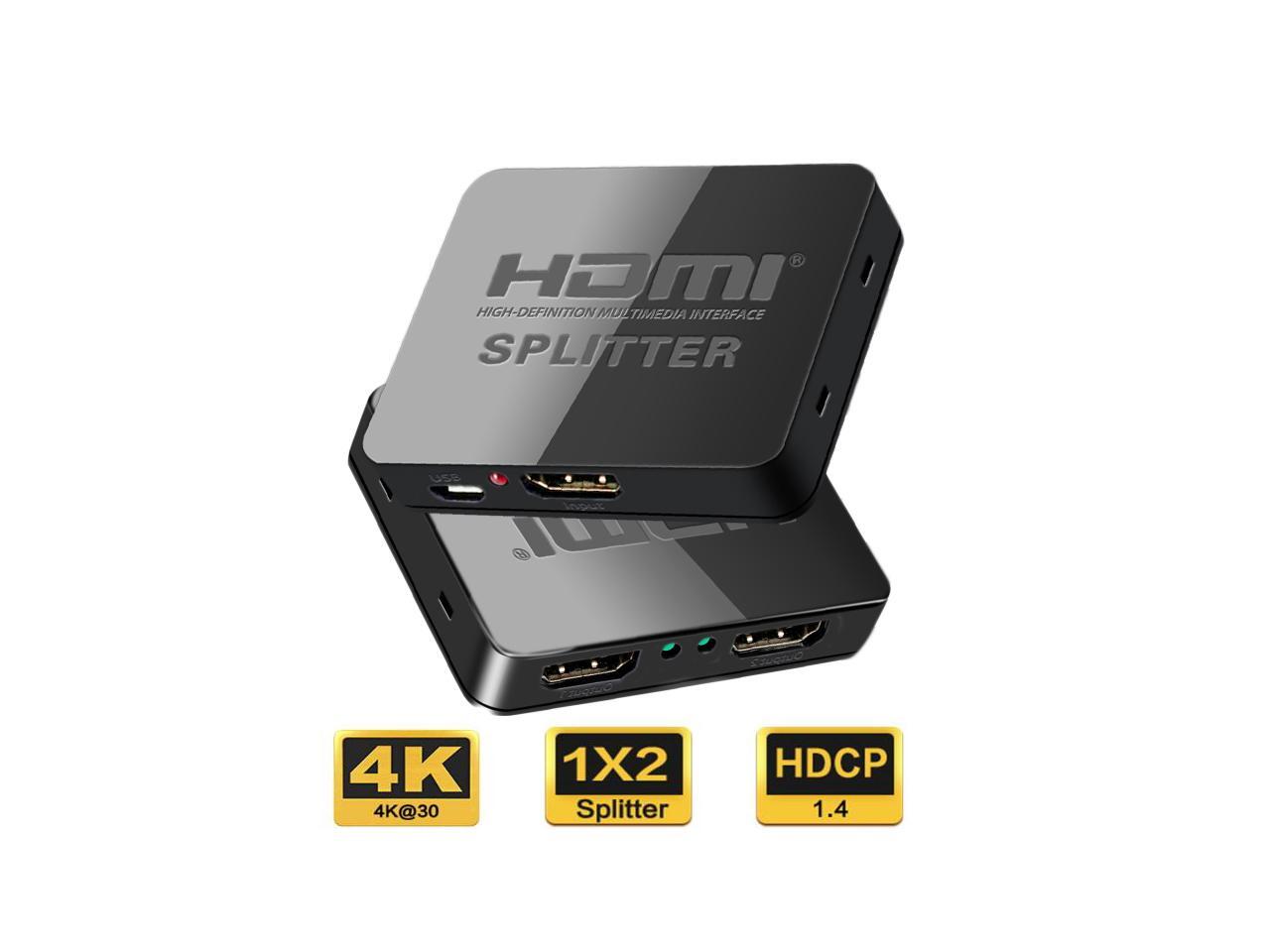 HDMI Splitter 1 in 2 Out - LUOM 4K HDMI Splitter, Powered HDMI Splitter Supports HDCP1.2 3D 4K@30HZ Full HD1080P for Xbox PS4 PS3 Fire Stick Roku Blu-Ray Player Apple TV HDTV