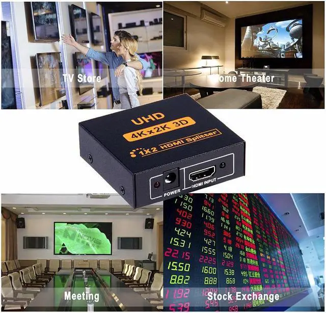 4K Power HDMI splitter suitable for most devices with standard HDMI interface. Input: Computer, XBox one, PS3, PS4 Pro, Fire Stick, Blu-Ray DVD player, Roku, etc. Output: Full HsD TVs, monitors, etc.