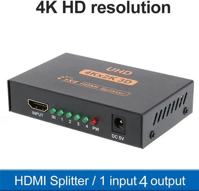 • 1. Split 1 HDMI input signal to 4 identical HDMI output signals,transmit video and audio simultaneously without any quality loss.