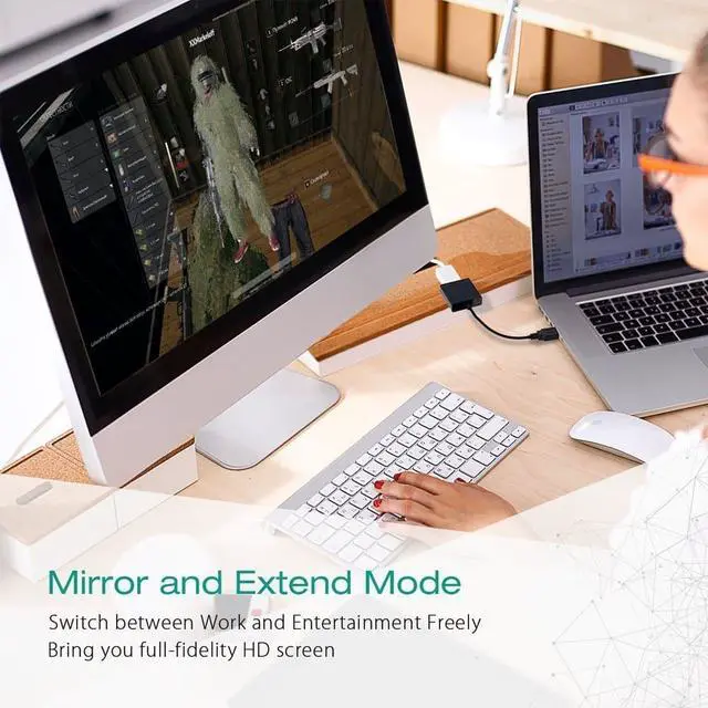 Do you want to view large or multiple spreadsheets across several displays? Do you want to share your videos or slideshows with your family members, friends, workmate on a bigger screen? This USB3.0 to VGA adapter provides you a great solution. It can be used to mirror your primary desktop, showing the same image on each display, or to extend your desktop to double your workspace and increase your productivity.