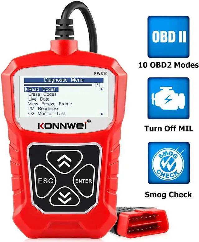 KW310 OBD2 Scanner, OBD2/ EOBD Car Code Reader with Full OBD2 Functions. Check Engine Code Reader Automotive Car Diagnostic Tool/Car Code Scanner for All OBDII Protocol Cars Since 1996