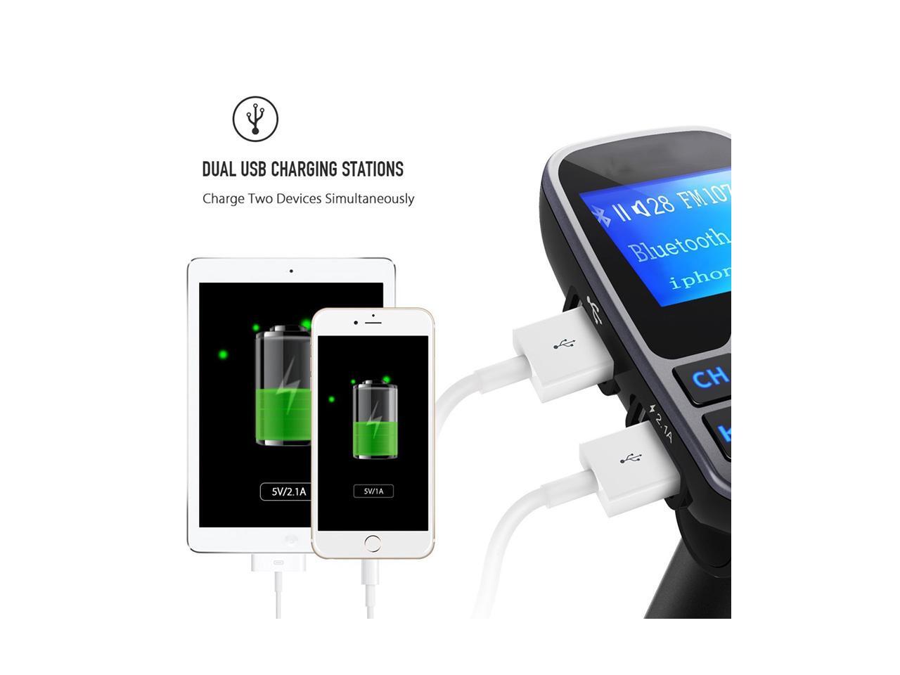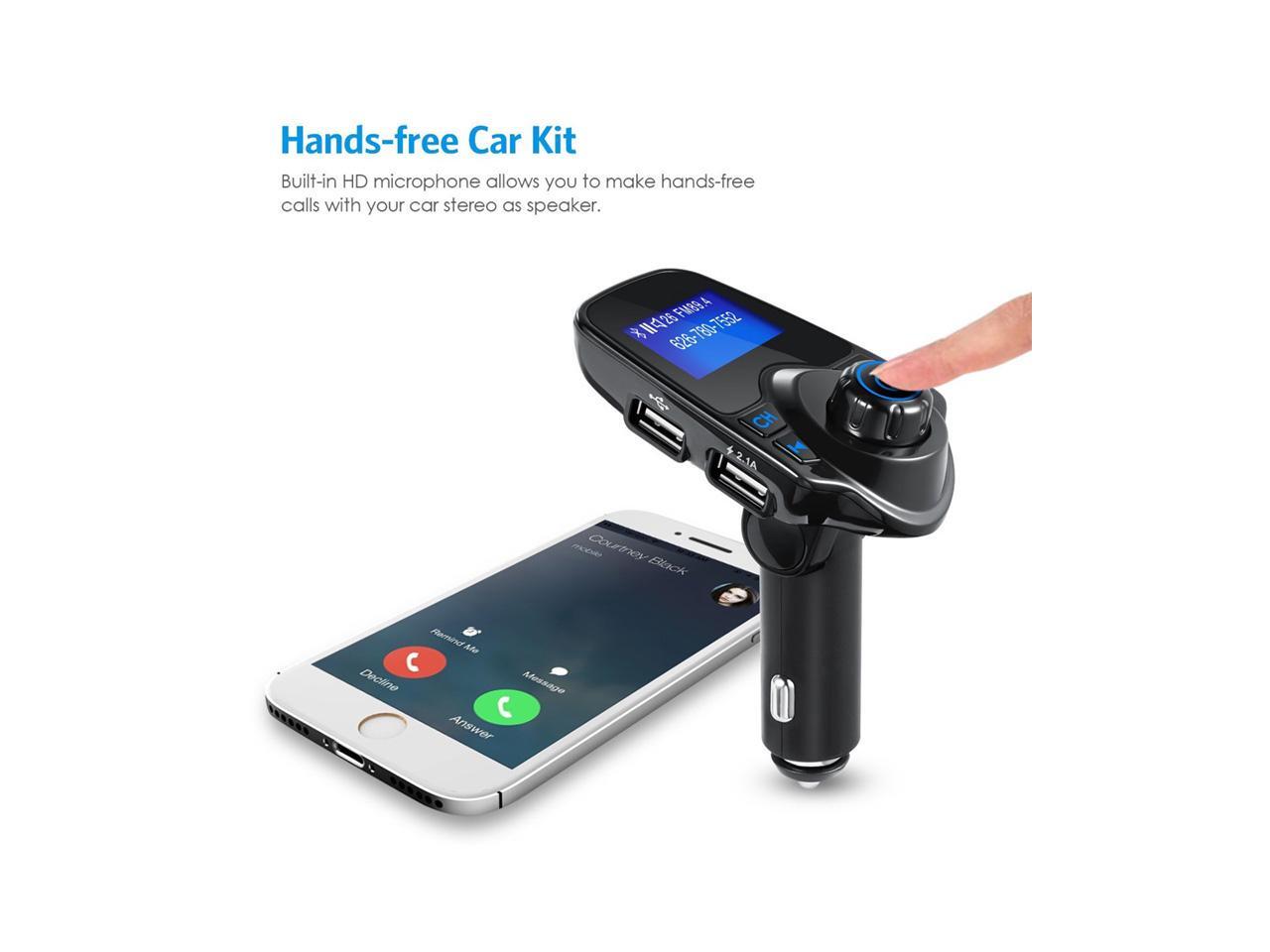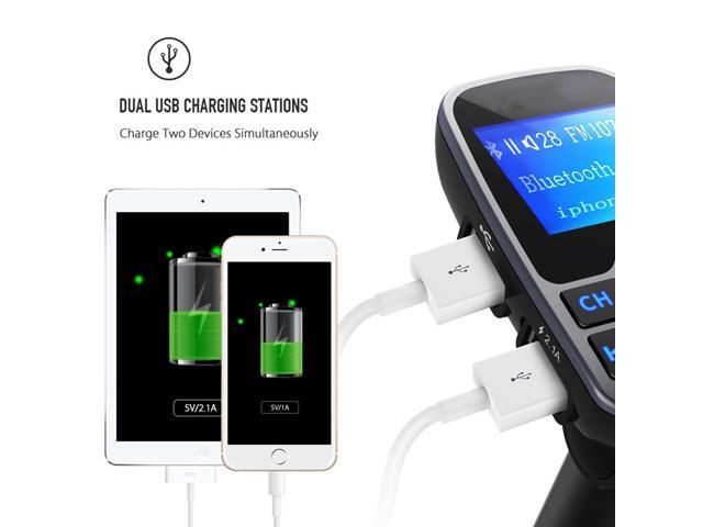 LUOM Bluetooth Wireless Car Mp3 Player Handsfree Car Kit FM Transmitter A2DP 5V 2.1A USB Charger 1.44 LCD Display Car FM Modulator