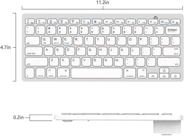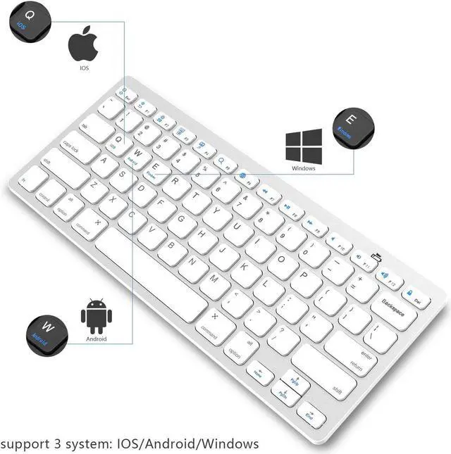 [UNIVERSAL COMPAYIBILITY]: The bluetooth keyboard works with iOS, Android, Mac and Windows, with shortcut keys for all four systems. Apple iPad Air, iPad 4 / 3 / 2, iPad Mini 4, iPhone 7Plus/7/6S/6, Galaxy Tab, Galaxy Note, Surface & More (Incompatible with Nook Tablets)