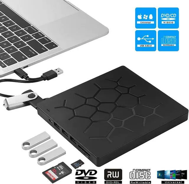 The USB-A and USB-C 2-in-1 cord makes it convenient whether on your new Macbook or old devices with traditional USB ports. The embedded data cable is easy to use and organize, skip-proof rubber pad prevents sliding on the desktop. The designed to be as thin as possible, the Dvd rom external drive is of lightweight and compact size, perfect to carry in your laptop bag, ideal for home, office, or anywhere you go.