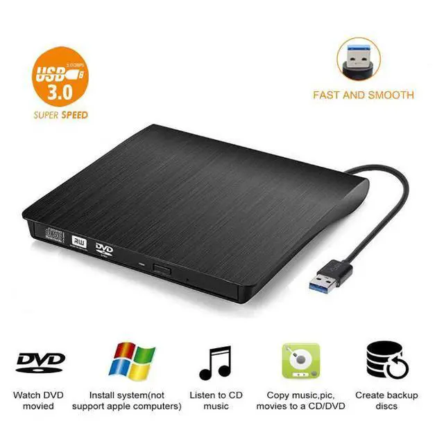 Currently, it's the best way to get an external DVD RW Burner, if your slim laptop or desktop has no internal DVD drive. Not need any additional software and extra power supply, plug and play. High-speed USB 3.0 CD DVD RW Burner with low impedance and anti-interference ability, bringing you smooth and fast experience for watching movies, listening to music, installing softwares or system, burning discs. Portable Compact Design:Slim, lightweight, shock-resistant design, and just slips easily into your travel bag.