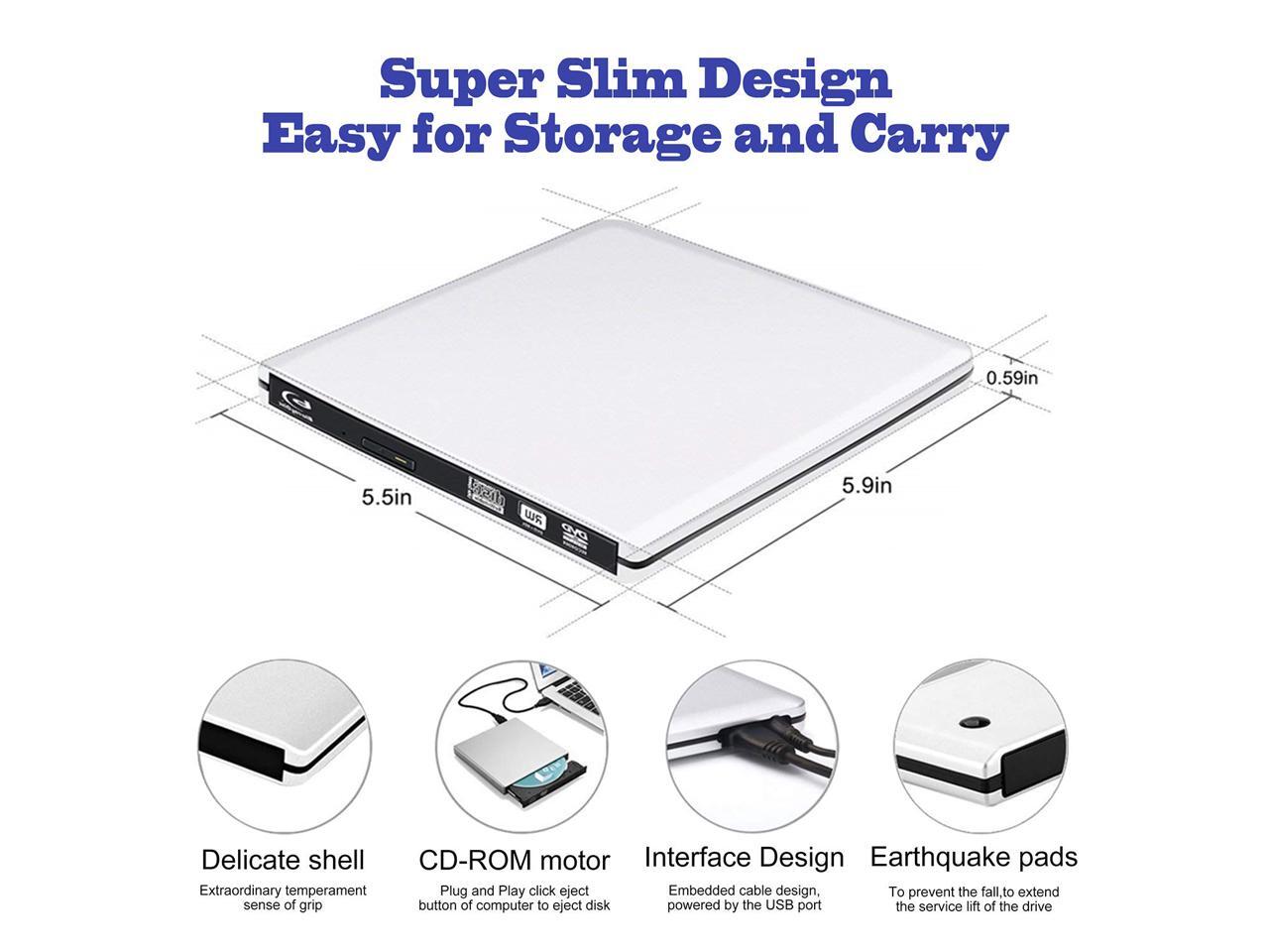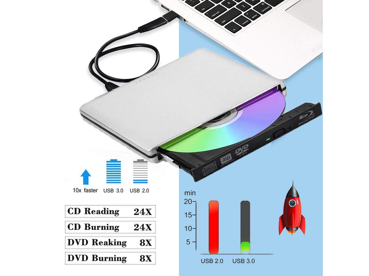 External Blu Ray Drive Type-C CD DVD Drive Ultra Slim USB3.0 Blu-ray Burner Writer Player for Laptop Desktop PC Windows 10/8/7 MacBook Mac Linux OS Apple , Silver
