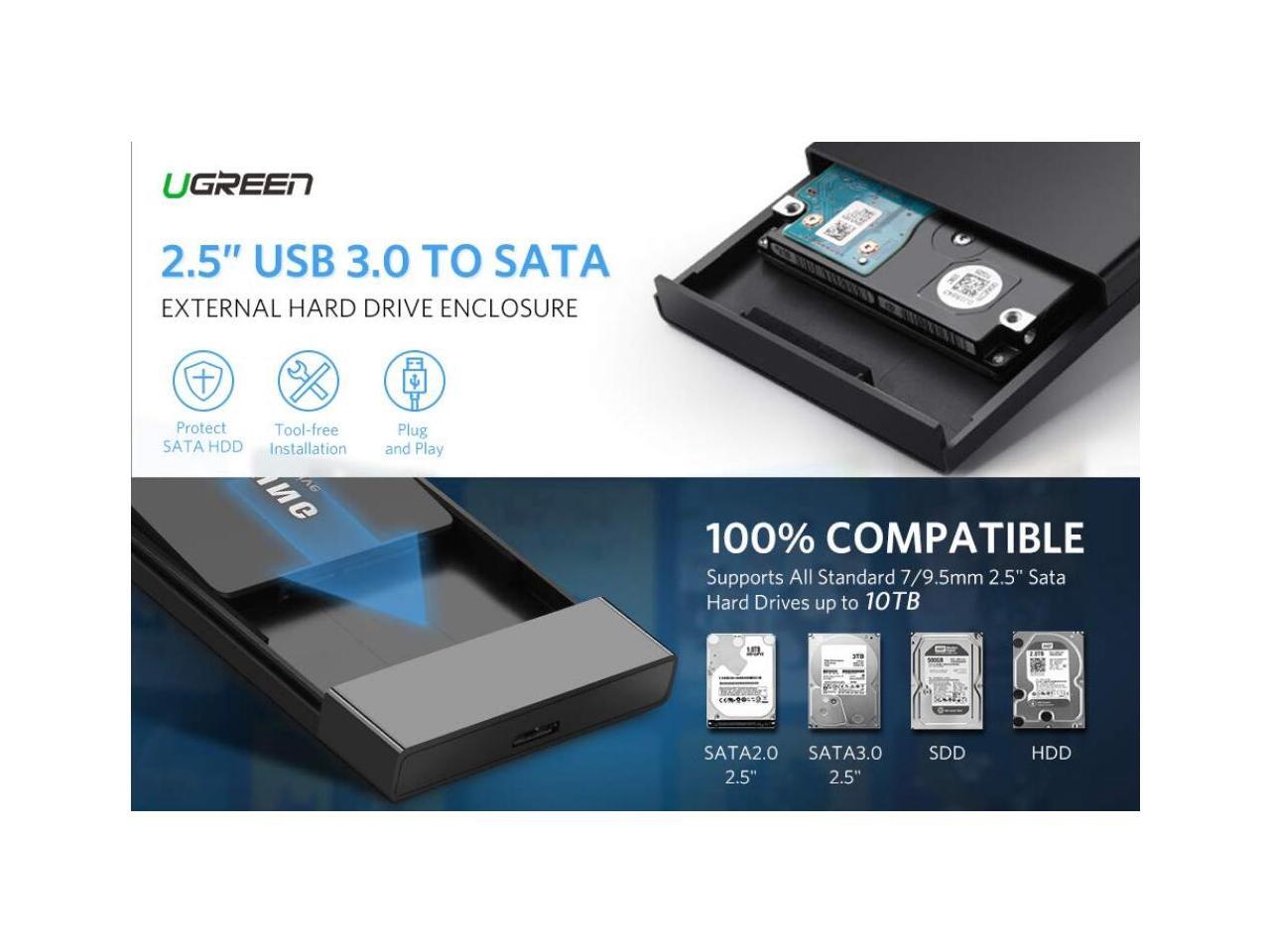 - Supports Windows, LINUX, Mac OS 8.0 and above systems. 2.5" HDD and SSD up to 10TB max within thickness of 7mm and 9.5mm, including Western Digital, Seagate, Toshiba, Samsung hdd or ssd with sata port