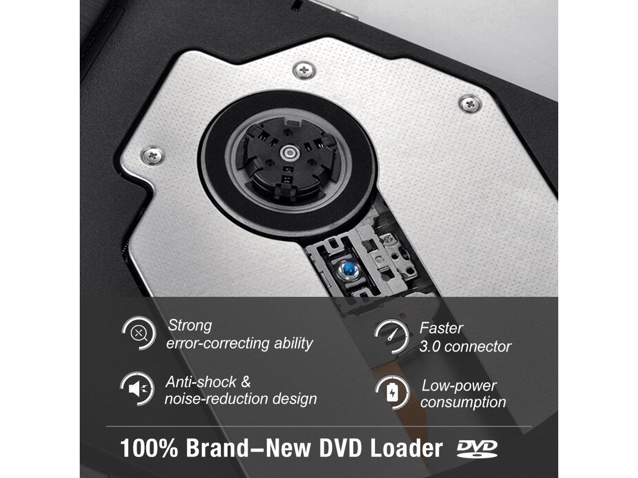 Advanced USB3.0 technology: This DVD-RW drive provides you high speed data transmission (much faster speed than the USB2.0 port) with strong fault tolerance. Backwards compatible with USB2.0 and USB1.0