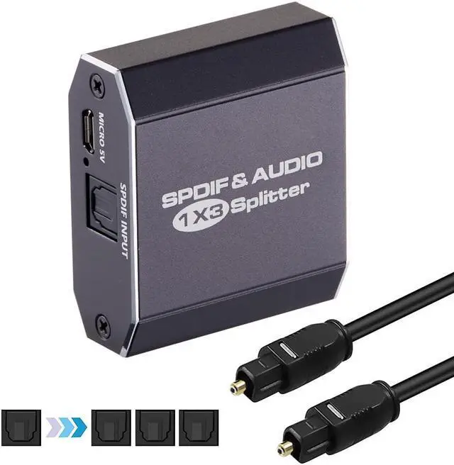 - Optical Splitter 1 in 3 out: The optical audio splitter can connect one optical fiber signal input device, then by fiber optic splitter output to 3 sets Optical/TosLink/ SPDIF audio output device.