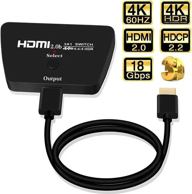 • 4K ULTRA HD RESOLUTION: 3 Ports HDMI Hub support HDMI Output Video - 4K/60/24Hz, 2K/60/30/24Hz, 3D, 1080P, 1080i, 720P, 720i, 576P, 576i, 480P; Support HDMI Output Video Up to 4K x 2K (3840 x 2160) 60Hz (Max). Support 3D, Supports 12- bit Deep Color, RGB 8:8:8, Compatible With HDCP2.2.