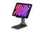 The desk tablet phone holder is composed with super sturdy metal-weighted base, and premium aluminum rod, which is strong enough to accommodate your phone and tablets. The silicone covered pad and the rubber hook assure you phone or tablet stay firmly in place and protect them from sliding and scratching. The rubber feet under the base makes it more stable when you tap the devices.