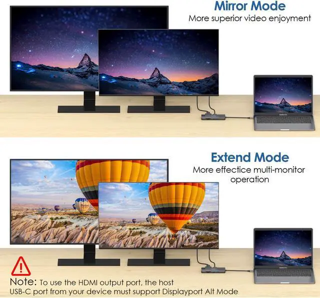 4K HDMI/VGA Output: This hub has a 4K HDMI output and VGA output, these allow you to easily mirror or extend your laptop screen to monitor or projector. Resolution would be up to 1080 when HDMI and VGA using simultaneously.
