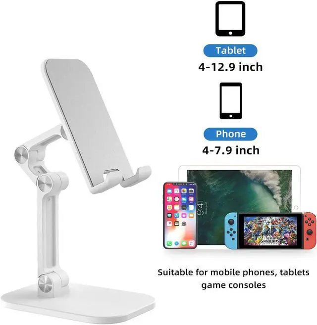 This cell phone stand is stable easily to support all smartphones and tablets from 4 Inch to Max 12.9 Inch, compatible with Nintendo Switch Lite, Kindle, iPhone 12 11 Pro Xs Xs Max Xr X 8 7 6, iPad mini, Samsung Galaxy S10 /S10+/S9 /S9+/S8 /S8+, Samsung Tab, Google Nexus.