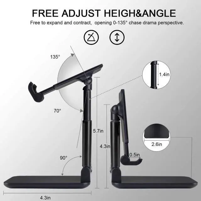 Height & Angle Adjustable Design: The angle of the universal phone stand can be adjusted from vertical to horizontal(0°-90°), and height can be extended up to 4.5 inches, which allows you to get most comfortable viewing posture. A good helper desktop accessory that frees your hands to watch videos, have online class, do live stream and so on.