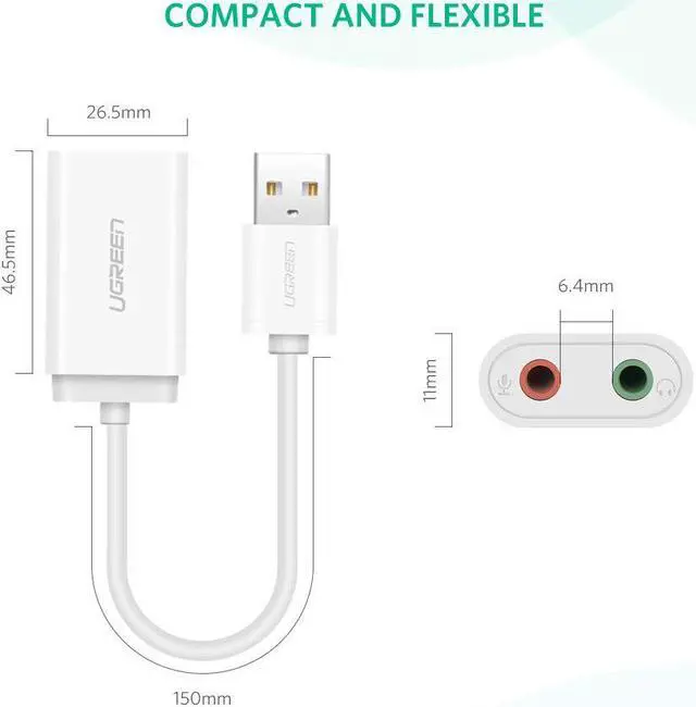 USB Audio Adapter includes a stereo headphone output jack and a mono microphone input jack. It can bypass the defective sound card or the faulty 3.5 mm audio port of your laptop/desktop system and regain the audio function for you. Save the cost of replacing a failed sound card. USB Audio Adapter External Stereo Sound Card With 3.5 mm Headphone And Microphone Jack For Windows, Mac, Linux, PC, Laptops, Desktops, PS4
