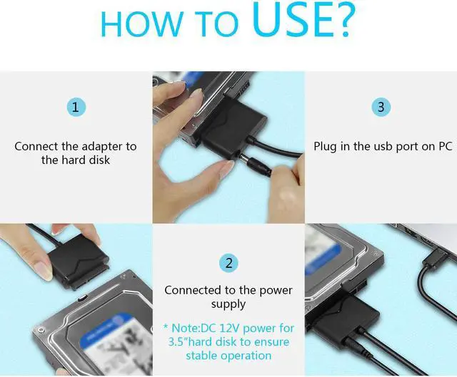 The USB 3.0 to SATA adapter cable lets you connect any 2.5 '' or 3.5 '' SATA drive and HDD drive to your computer through an available USB port -- the easiest way to upgrade the hard drive in your laptop by adding an external SSD via USB 3.0.
