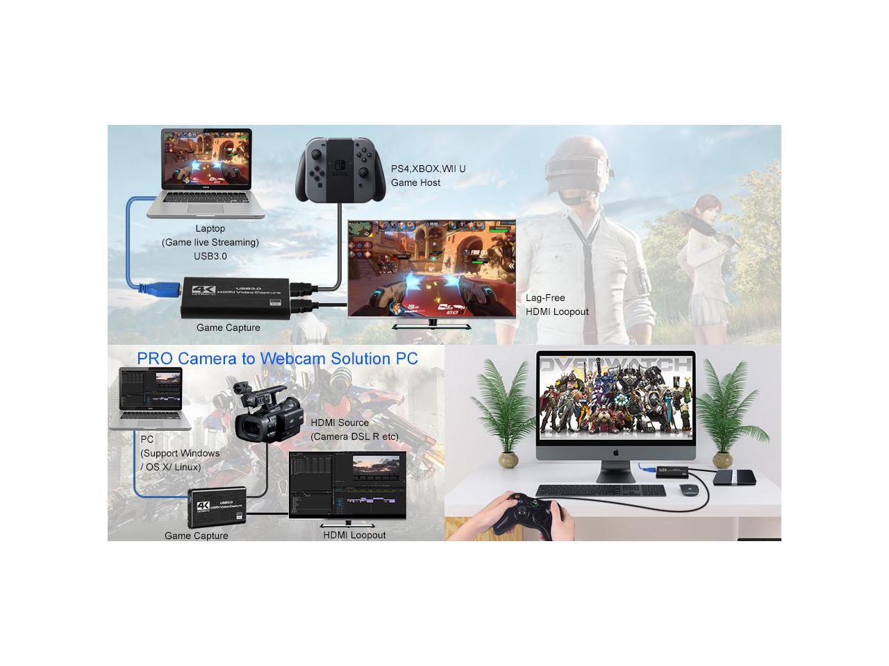 - 1080P HD Quality: Capture resolution up to 1080p at 60fps for video source and it is ideal for all HDMI devices such as PS4, PS3, Xbox One, Xbox 360, Wii U, Nintendo Switch, DVDs, DSLR, Camera, Security Camera and set top box.