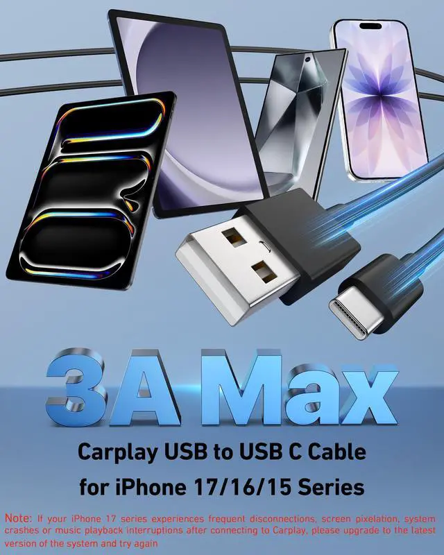 iPhone 17 16 Car Carplay Cable, USB Type C Cable (USB A - to USB-C)