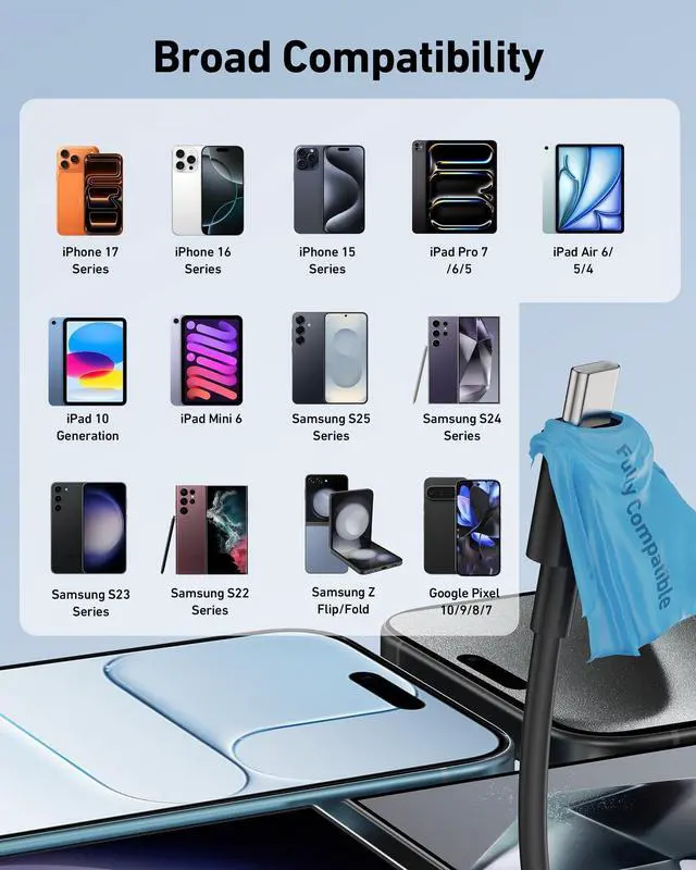 Compatible with iPhone 17/17 Pro/17 Pro Max/Air, iPhone 16/16e/16 Plus/16 Pro/16 Pro Max, iPhone 15/15 Plus/15 Pro Max, iPad Pro/Air, Samsung, Google, LG, also connects your Siri Remote (3rd generation) or Apple TV Remote (3rd generation), Carplay or Android Auto.