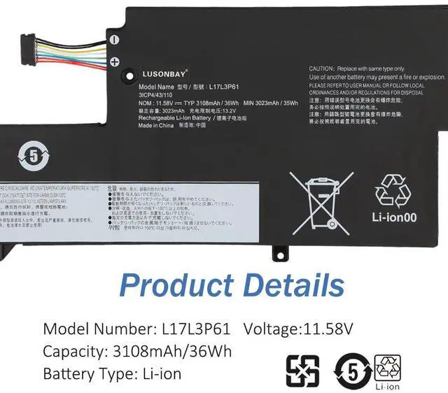 LUSONBAY L17L3P61 L17M3P61 L17C3P61 Laptop Battery For Lenovo IdeaPad 320S-13IKB,Yoga 330-11IGM/720-12IKB,Flex 6-11IGM ,xiaoxin 7000-13 81AK
