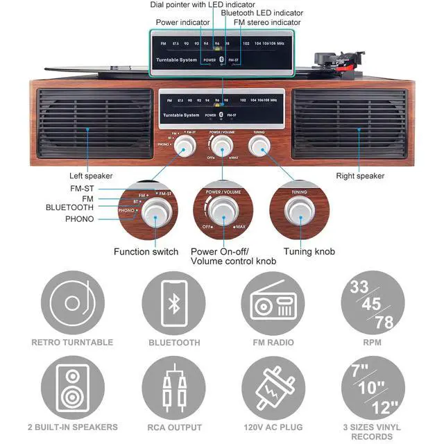 - Note: This turntable supports Bluetooth receiving function. It does not support Bluetooth transmitting function.