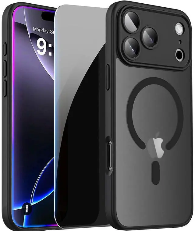 LWLFEKA Magnetic for iPhone 17 Pro Max Case with Privacy Screen Protectors & Full Camera Cover,Compatible with MagSafe for iPhone 17ProMax Cover Translucent Matte Phone Case for Men Women/Girls-Black