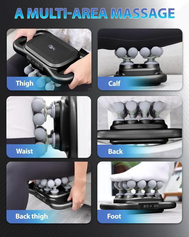 Versatile Muscle ReliefThis 16 head back massager is expertly designed to relieve tension in various muscle groups including legs, back, and shoulders; An essential back massagers tool for athletes and fitness enthusiasts, this 16 head massage gun offers powerful relief for post-workout recovery and daily stress.