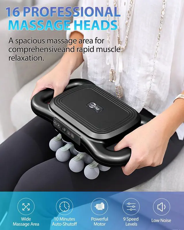 16 Head Deep Tissue MassagerUFFAE 16-head massage gun deep tissue technology features a multi head massage gun design with 9 modes and 9 intensity levels, offering a comprehensive solution for muscle recovery; This 16 head deep tissue massager precisely targets muscle groups for effective deep tissue massage.