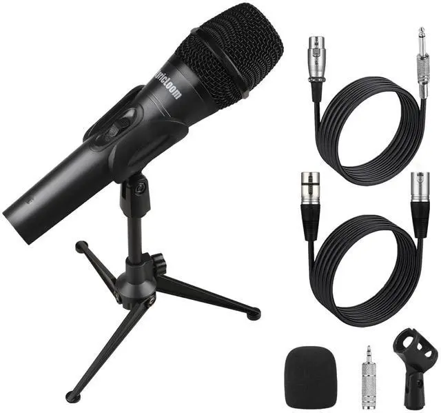 Professional XLR Microphone Wired with Stand, Metal Vocal Dynamic Microphone with Two Cable(16.4 XLR Male to Female & 6.35mm), Corded Microphone for Karaoke, Speaker, Singing, Recording