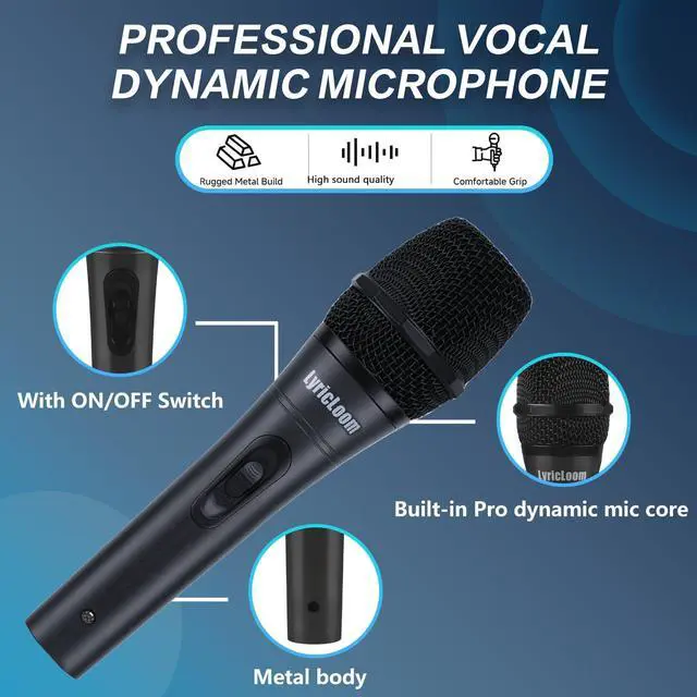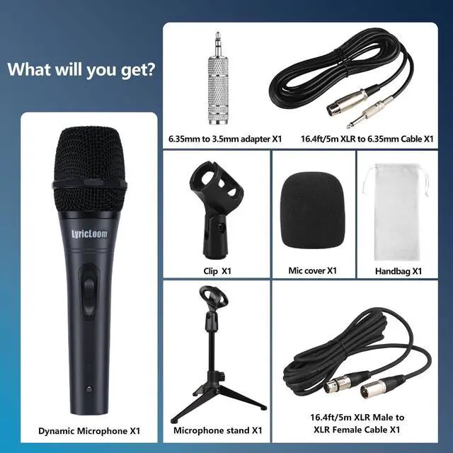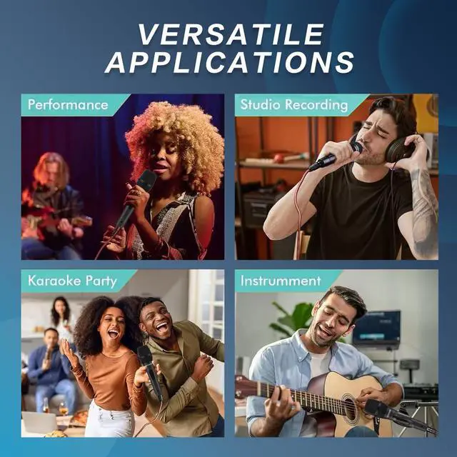 Easy To UseThe vocal dynamic wired microphone is easy to operate, plug and play without the need for batteries, and supports various devices such as karaoke machines, amplifiers, mixers, sound cards, and portable speakers. Therefore, whether you use it for karaoke, churches, speeches, recording, concerts, singing or various occasions, this microphone can be your ideal choice.