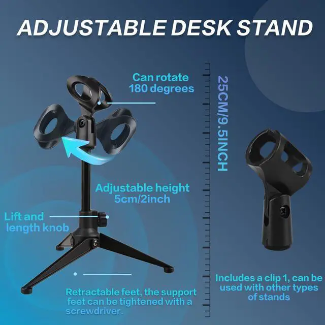 Adjustable desktop supportWith a height-adjustable desktop stand, it is convenient for you to use the microphone for recording or podcasting.