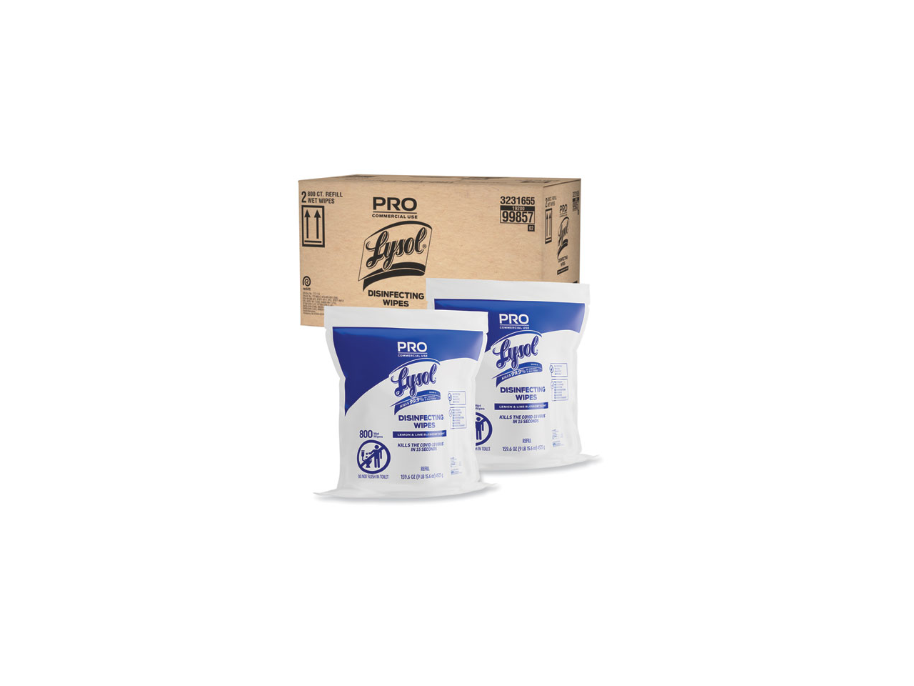 Lysol 19200-99857 Professional Disinfecting Wipe Bucket Refill, 6 x 8, Lemon and Lime Blossom, 800 Wipes/Bag, 2 Refill Bags/Carton