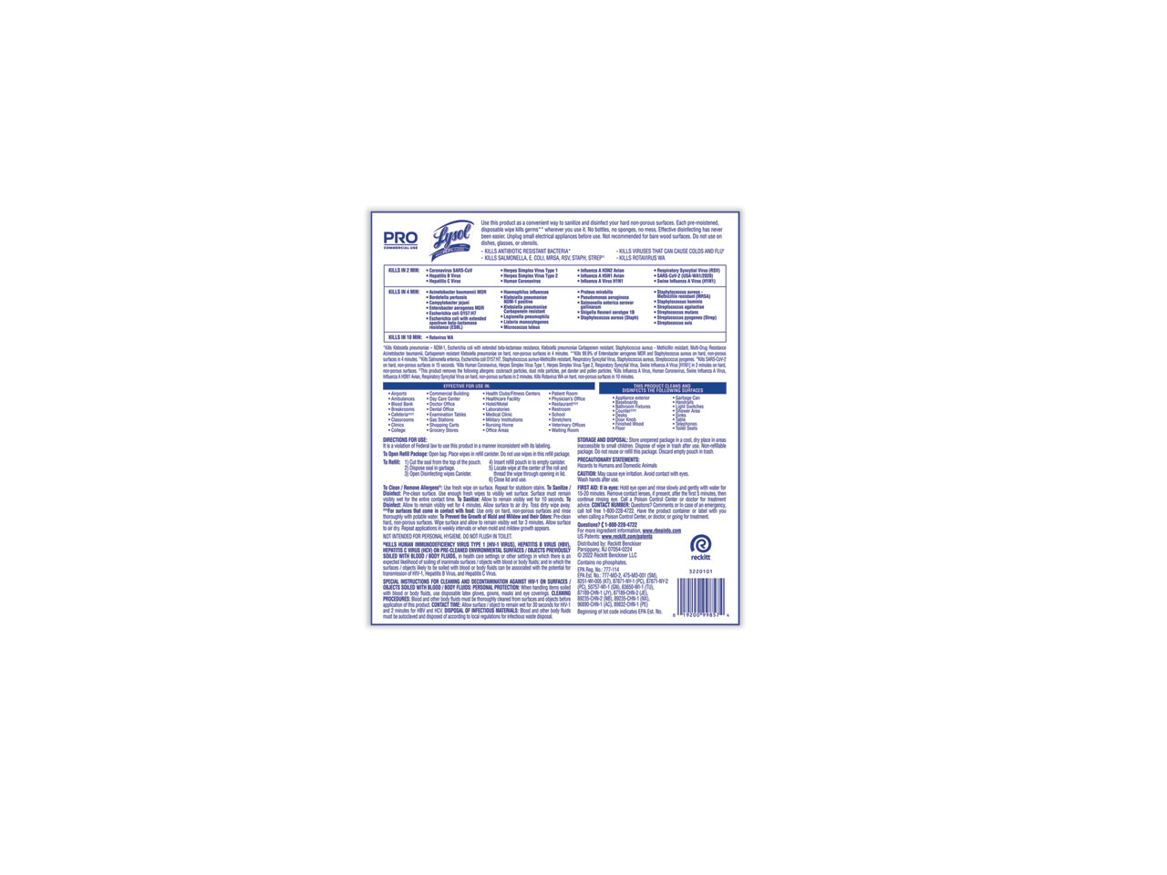 - Kills 99.9% of viruses and bacteria, including cold and flu viruses, Salmonella, E. Coli, MRSA, RSV, Staph, and Strep, when used as directed on hard, non-porous surfaces.